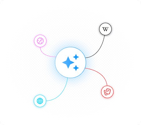 Crée, apprends, applique - en une seule frappe. Compose tes pages avec l’IA (cours, fiches, résumés, plans), relie-les avec @pages, et branche des sources (Wikipédia, Web, documents) pour des réponses contextualisées en direct.